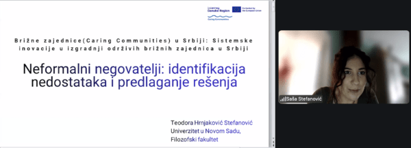 O temi neformalnih negovatelja, njihovog položaja, ključnih nedostataka u sistemu podrške i mogućih pravaca unapređenja govorila je Teodora Hrnjaković Stefanović sa Filozofskog fakulteta Univerziteta u Novom Sadu, ukazujući na razmere neplaćene i često nevidljive brige, rodne nejednakosti u pružanju nege, kao i na potrebu za sistemskim prepoznavanjem i podrškom neformalnim negovateljima.