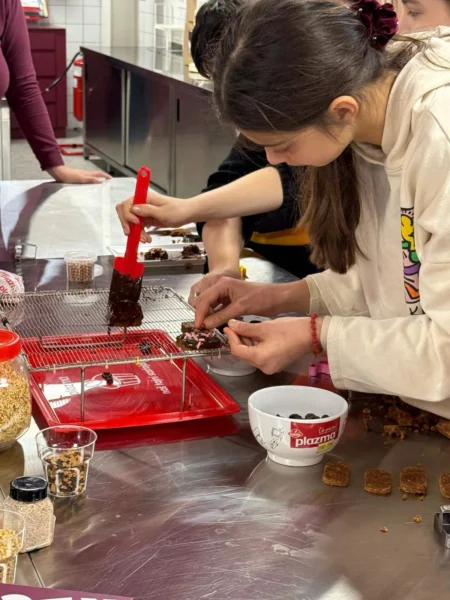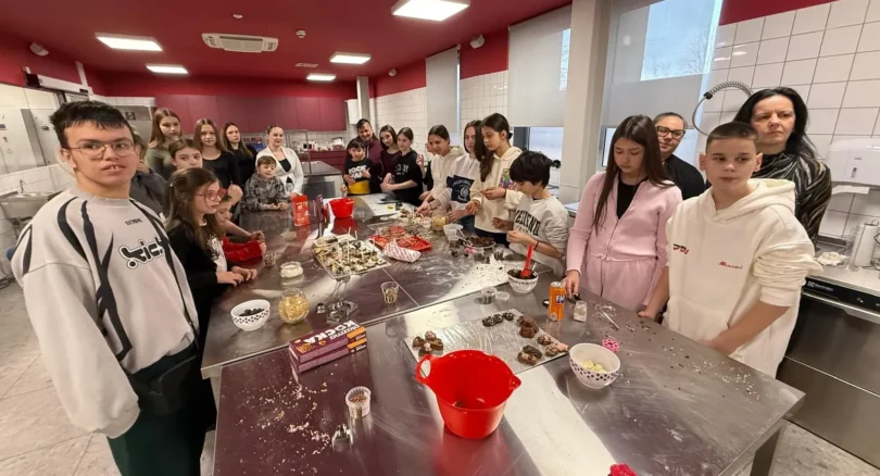 Mali gosti nisu bili samo posmatrači, već aktivni učesnici radionice. Sa kapama na glavama, osmesima na licima i ozbiljnim istraživačkim zadatkom pred sobom, dobili su priliku da sami osmisle i kreiraju svoje slatkiše. Kroz timski rad i kreativne izazove učili su o inovacijama, odgovornosti i značaju zajedničkog rešavanja problema.